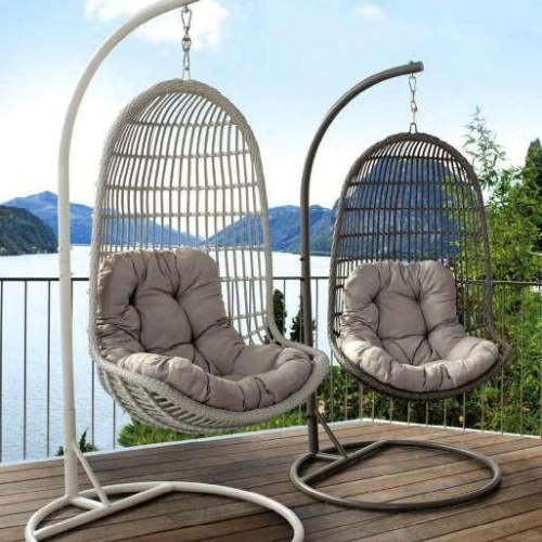 Hanging Egg Chair with Stand – Black, White – 05C